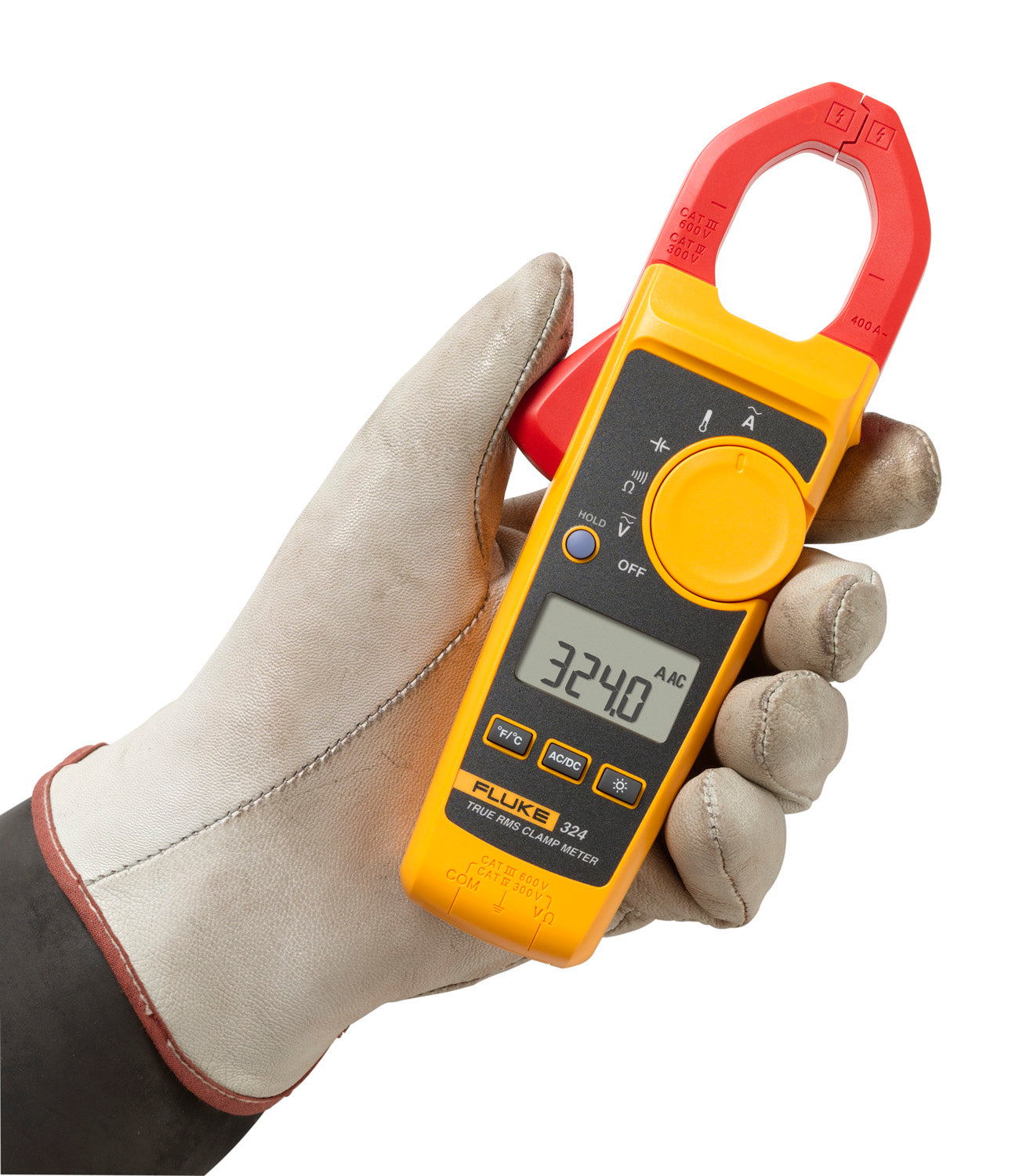 Las medidas de verdadero valor eficaz y la ergonomía optimizada hacen de las pinzas amperimétricas de la serie 320 las mejores herramientas de resolución general de problemas para los electricistas comerciales y residenciales. Los modelos 323, 324 y 325 de Fluke están diseñados para verificar la presencia de corriente de carga, tensión de CA y la continuidad de circuitos, conmutadores, fusibles y contactos. Estas pinzas amperimétricas pequeñas y resistentes son ideales para adaptarse a mediciones de corriente de hasta 400 A en espacios reducidos. El modelo Fluke 324 también cuenta con capacidades de medición de temperatura y capacitancia.